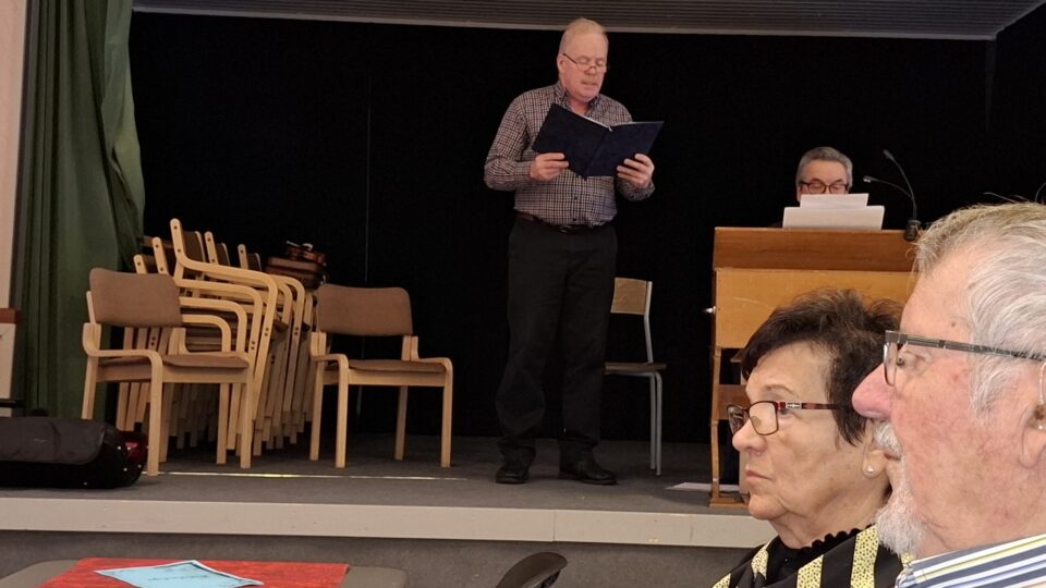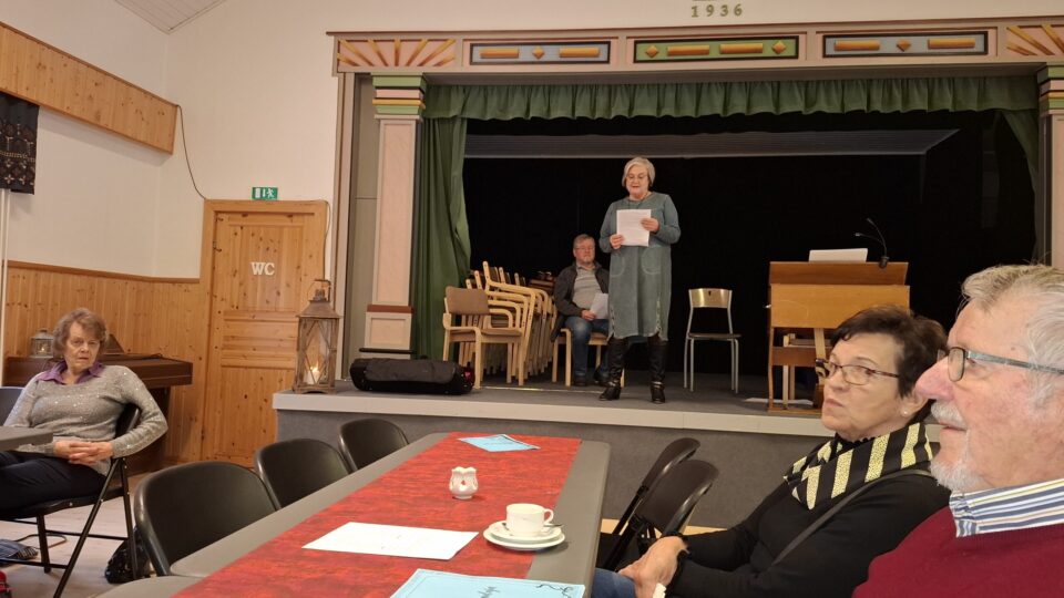 Anne Kauppinen luki Juhan tekemiä kirjoitelmia, sannaa. Tyyliltään ne olivat runollisia kertomuksia”, ilman riimiä.